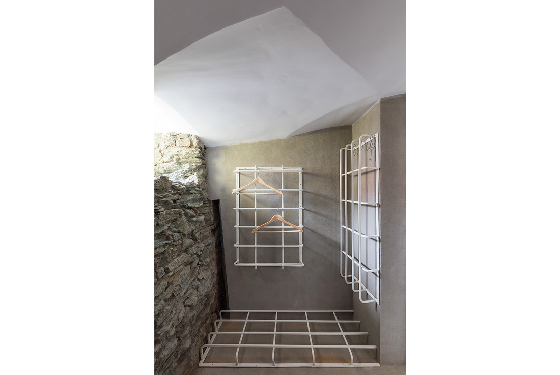 400 let stara hiša je bila zgrajena na vrhu zunanje stene trdnjavskega jarka. Ko so renovirali stanovanje, so želeli enoto znova spremeniti v hišo za goste ter obdržati elemente prvotne hiše. Z uporabo enostavnih rešitev so arhitekti želeli ustvariti enostavne in uporabne prostore, ki bi odražali ter poudarili srednjeveški kontekst. Večina prizemnega, kletnega dela se odpira na majhen, zasebni vrt in služi kot filter med notranjostjo in zunanjostjo ter tako povezuje različne funkcije, ki so lahko zelo uporabne v vseh štirih letnih časih, kot je vinska klet, prostor za sprostitev, savna in shramba. Zgornje nadstropje pa okvirjajo zunanje stene.